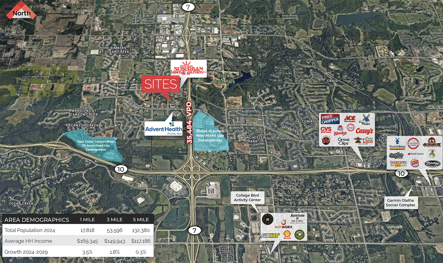 Adjacent to Advent Health Prairie Star campus, Suburban Lawn & Garden, Sunflower Medical Group, Kaw Prairie Church, and new Aestheti Care and Kremers, Forbes & Assoc dentistry